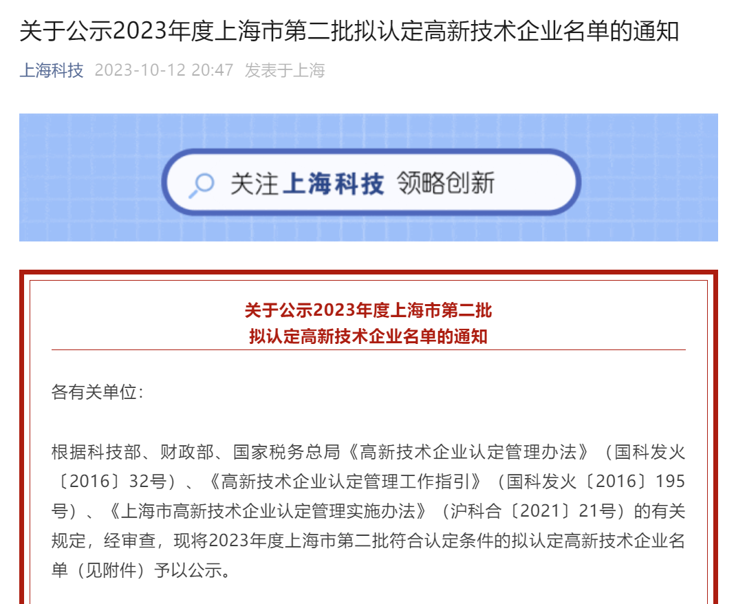 根据科技部、财政部、国家税务总局《高新技术企业认定管理办法》(国科发火〔2016〕32号)、《高新技术企业认定管理工作指引》(国科发火〔2016〕195号)、《上海市高新技术企业认定管理实施办法》(沪科合〔2021〕21号)的有关规定,经审查,认定上海无忧供应链管理有限公司符合高新技术企业标准。